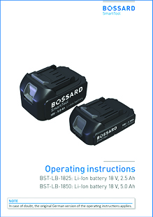 BST-LB-1825: Li-Ion battery 18 V, 2.5 Ah; BST-LB-1850: Li-Ion battery 18 V, 5.0 Ah